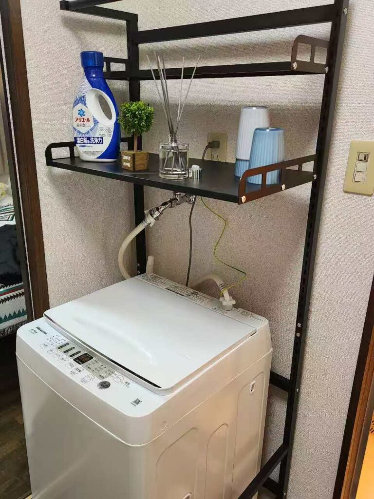 お部屋にはエアコン、テレビ、高速Wi-Fiを完備し、ゆったりとお寛ぎいただけます。キッチンには冷蔵庫や電子レンジ、調理器具を備えており、自炊を楽しむことも可能です。長期滞在の方にも便利なように、各客室には洗濯機も設置しております。